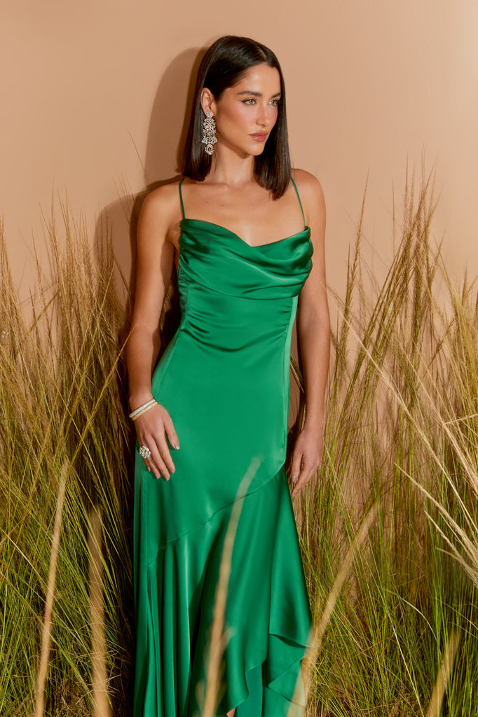 VESTIDO LONGO FENDA BABADO EUCALIPTO - Verde / 36 / Longo está em espera e será enviado assim que estiver de volta em estoque