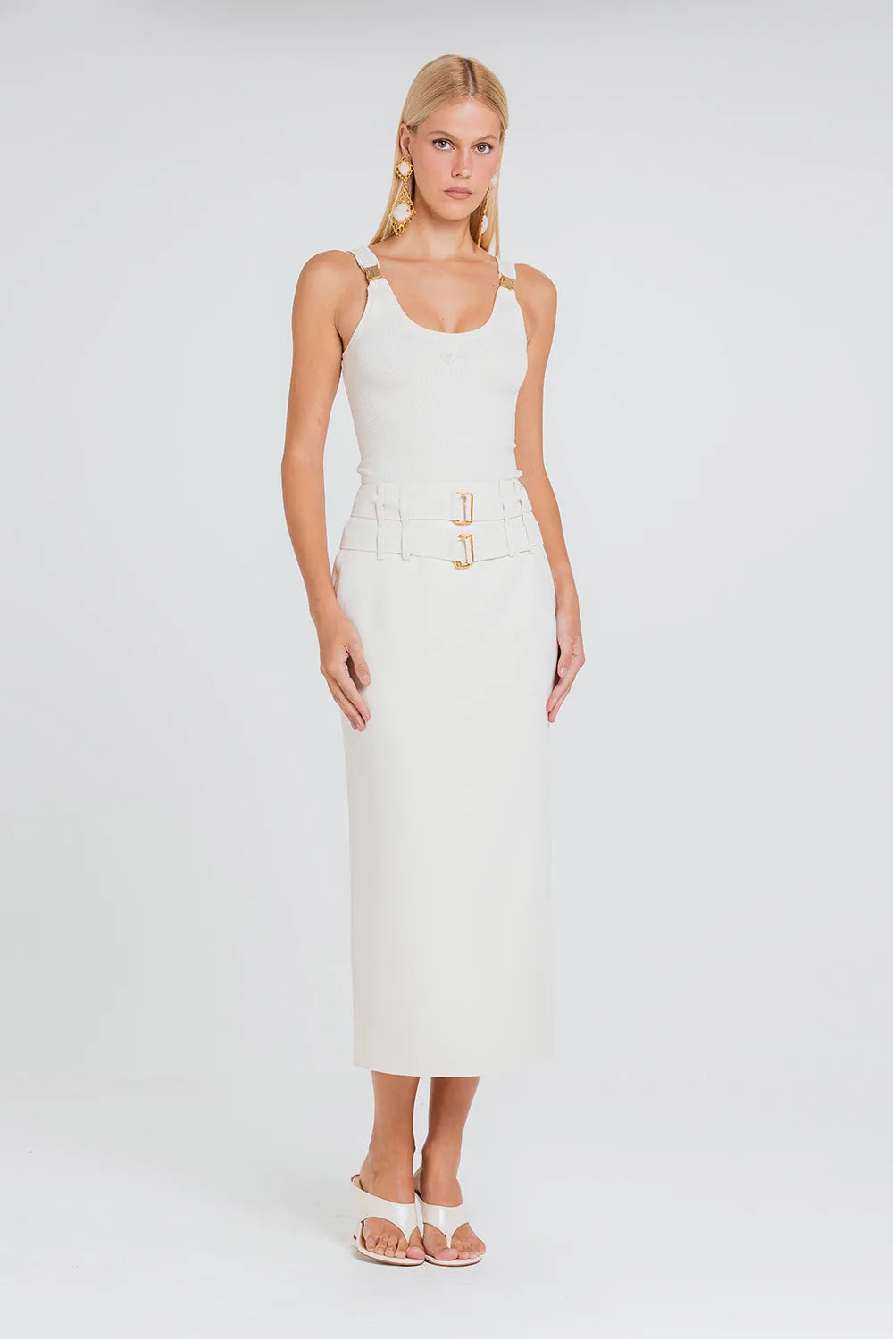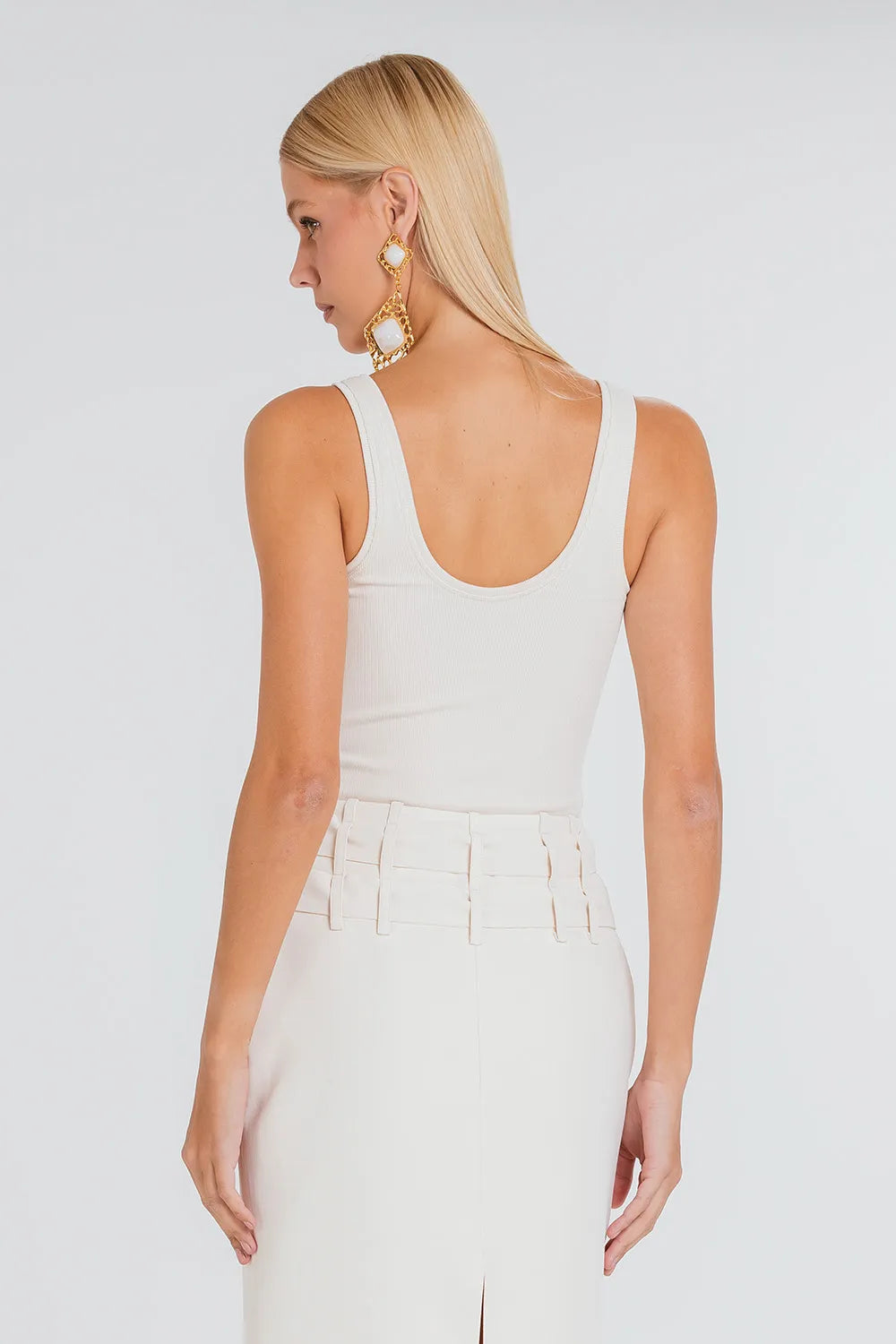 Confeccionada em malha canelada com alto grau de elastano e stretch, a REGATA IVONE é uma peça coringa do guarda-roupa. Seu decote adiciona sutileza na medida certa, enquanto as alças mais largas garantem equilíbrio entre conforto e elegância, além de possuírem fivelas personalizadas CHARTH que trazem ainda mais informação de moda para suas produções.