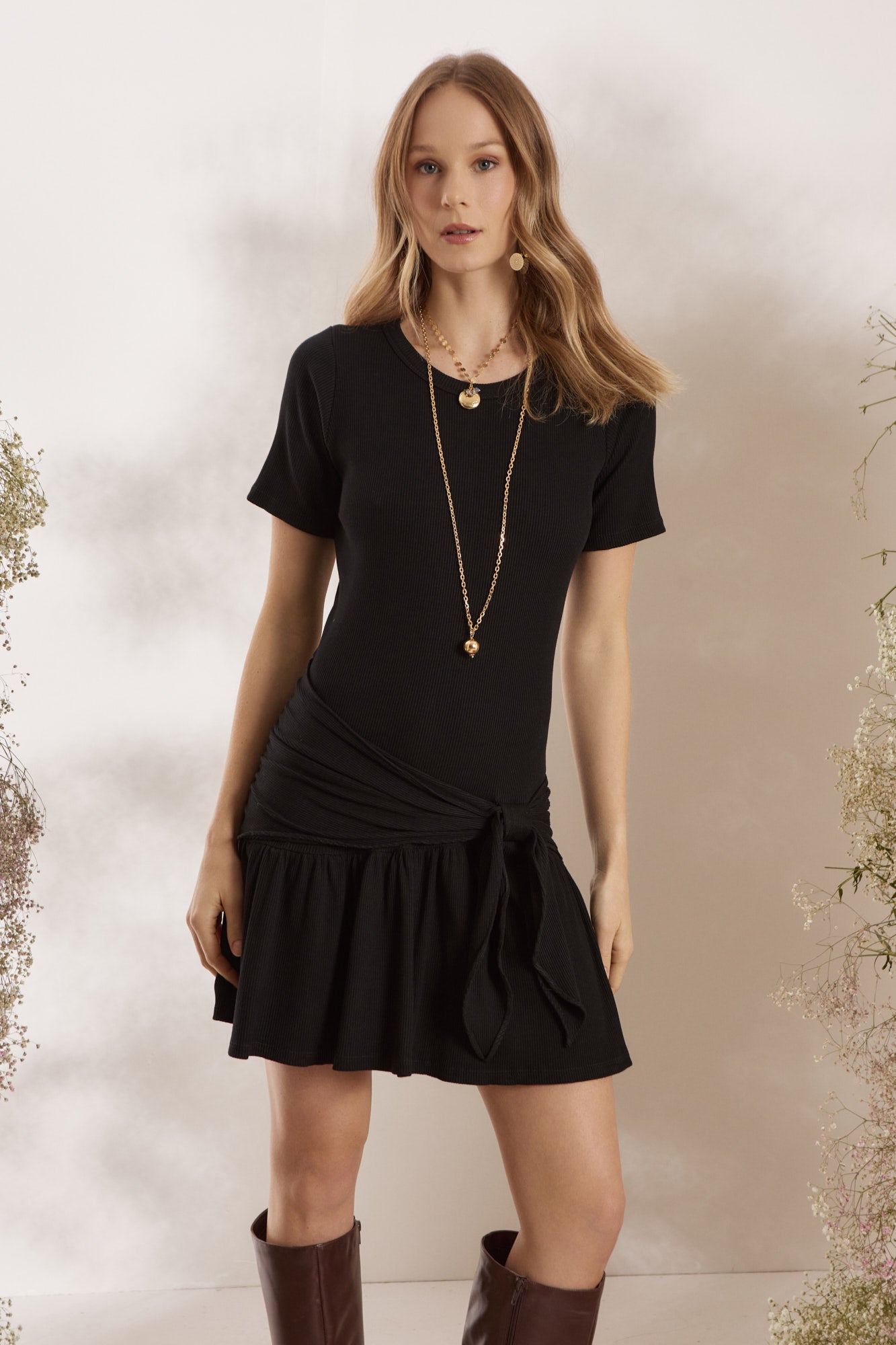 VESTIDO CANELADO NAECOCEL FAIXA PRETO - Preto / 36 / Curto está em espera e será enviado assim que estiver de volta em estoque