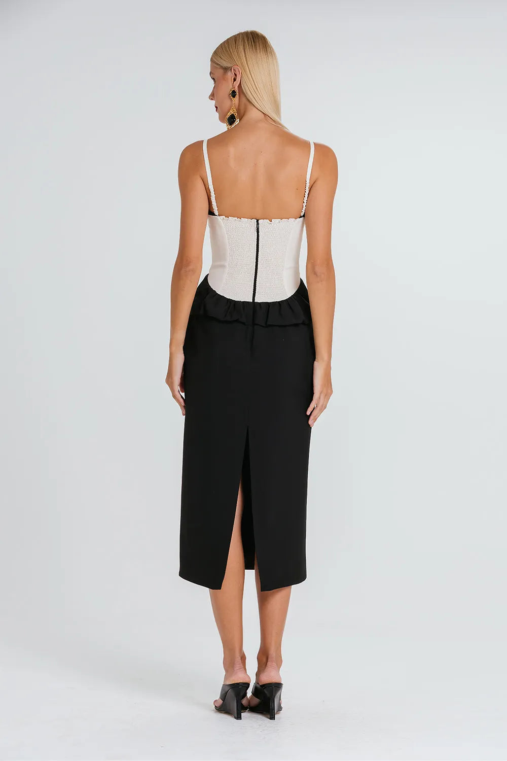 VESTIDO ELAIA PRETO/MARFIM - Preto / P / Midi está em espera e será enviado assim que estiver de volta em estoque