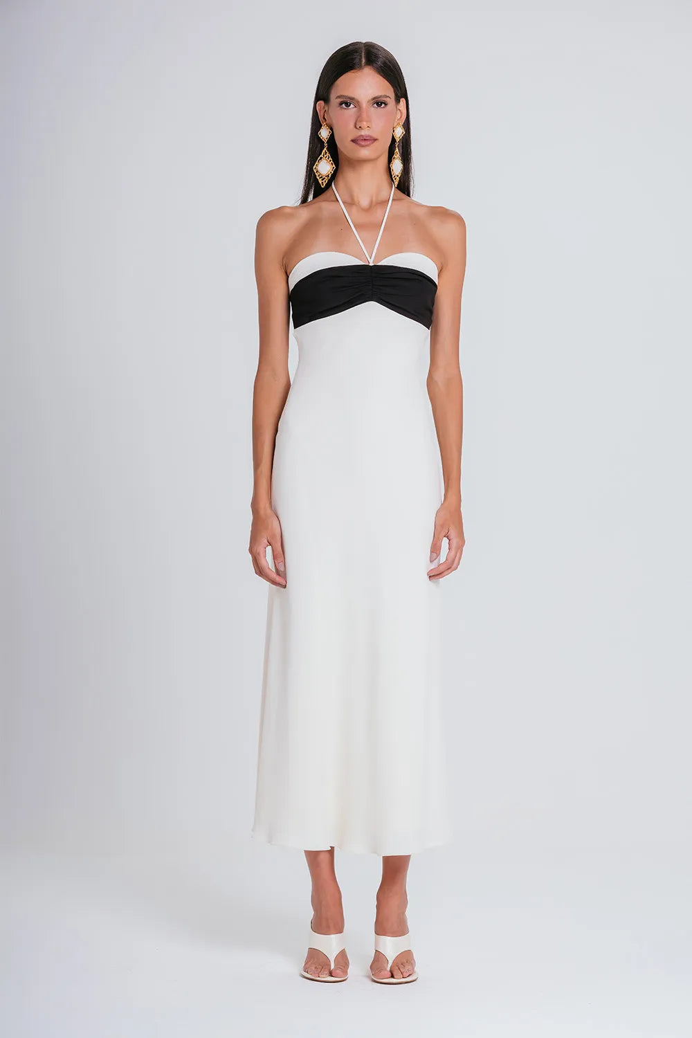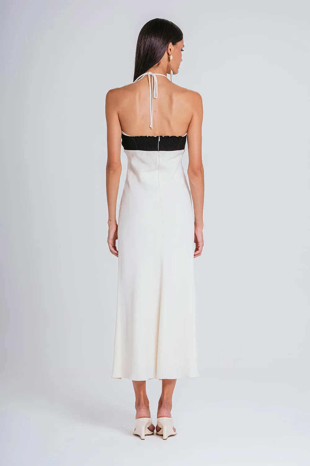 Confeccionado em nosso crepe premium com acetato e viscose, dispõe de toque suave e caimento estruturado, valorizando a silhueta. O Vestido Lana apresenta amarração no pescoço e fechamento por zíper invisível nas costas, desenhando a silhueta de uma forma confortável e moderna, além de um franzido central que eleva as formas da peça de forma ímpar.