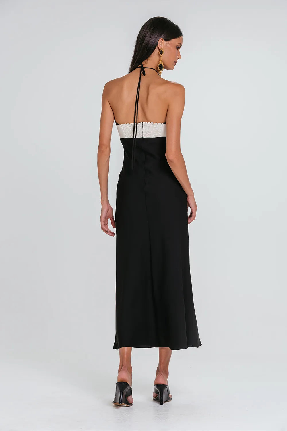 Confeccionado em nosso crepe premium com acetato e viscose, dispõe de toque suave e caimento estruturado, valorizando a silhueta. O Vestido Lana apresenta amarração no pescoço e fechamento por zíper invisível nas costas, desenhando a silhueta de uma forma confortável e moderna, além de um franzido central que eleva as formas da peça de forma ímpar.