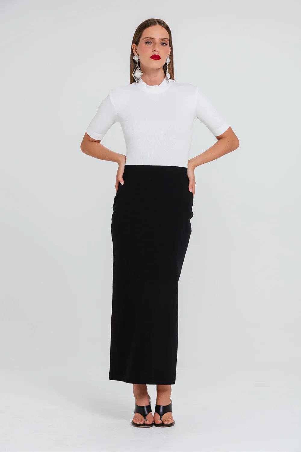 O VESTIDO MARISA une nossa malha de alta qualidade com a proposta bicolor de forma minimalista e super elegante, resultando em uma peça atemporal e super clássica, perfeita para se ter no guarda roupas.