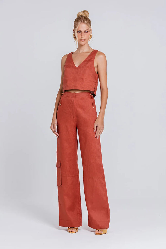 A CALÇA JEANNE une modernidade e conforto em uma única peça. Feita em linho premium, apresenta cintura alta com reguladores no cós, pernas amplas e fluidez no caimento, criando uma silhueta alongada e elegante. Uma peça coringa extremamente versátil, que permite composições refinadas para diferentes ocasiões.
