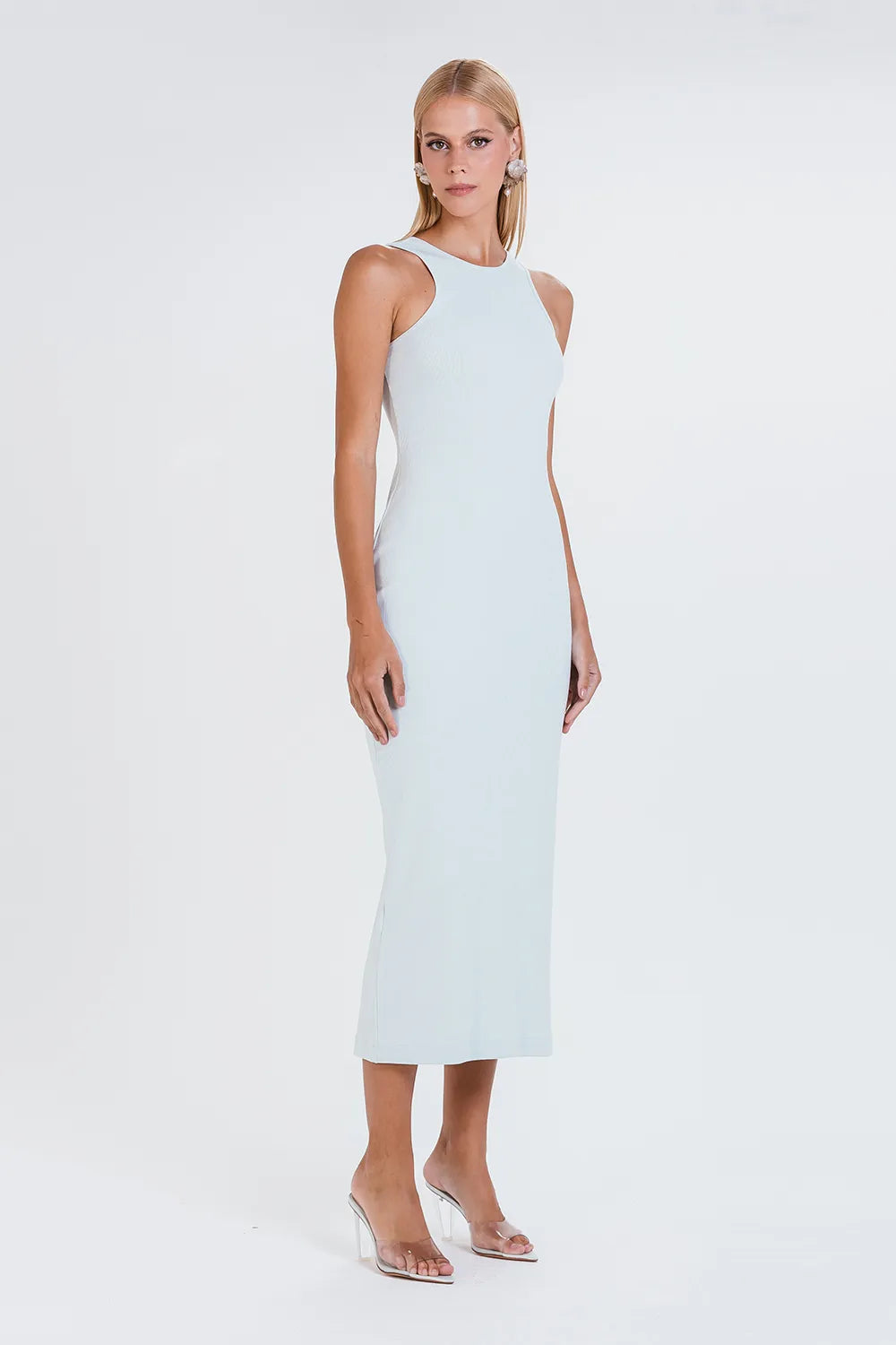 Feito na malha Charth ribana, traz modelagem minimalista de comprimento midi, decote nadador, além de uma abertura nas costas, deixando a peça ainda mais feminina.