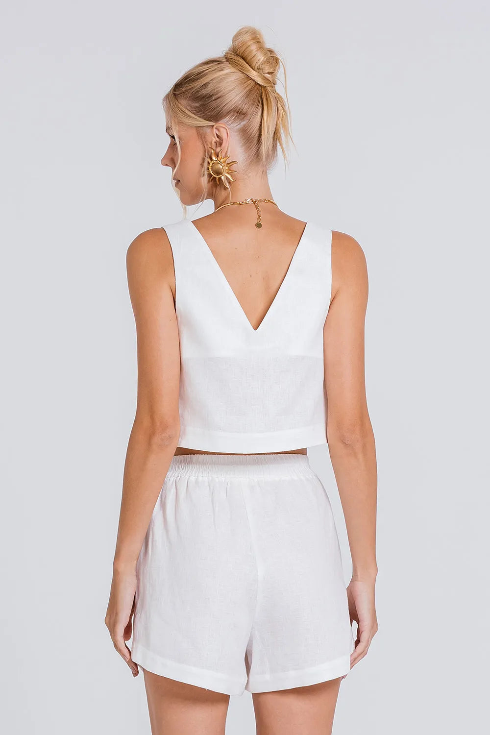 A REGATA NEREU é a união entre minimalismo e sofisticação. Produzida em linho premium, traz modelagem reta ampla e alças médias que garantem conforto e firmeza. O decote em V alonga a silhueta e traz feminilidade para sua produção, enquanto seu caimento leve a torna ideal para combinações elegantes em qualquer ocasião, seja sozinha ou como base para sobreposições.