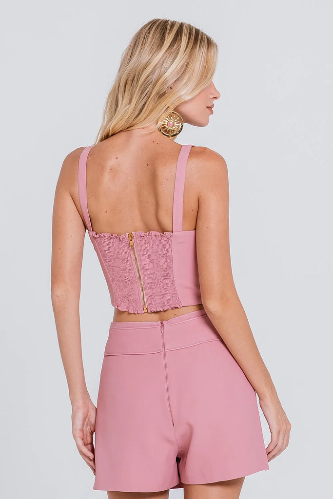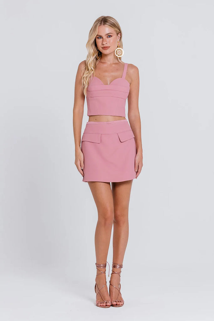 Combine o Short Saia Alba com nossos Tops, para um look equilibrado e sofisticado, perfeito para diversas ocasiões.