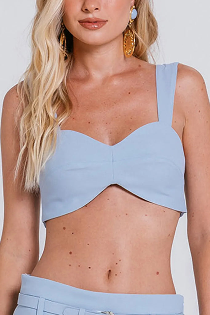 Confeccionado em crepe premium de acetato com viscose, oferece toque suave e caimento impecável. Sua modelagem cropped em estilo faixa valoriza a silhueta com um visual sofisticado, enquanto as alças estruturadas garantem conforto e segurança. O recorte triangular na barra proporciona um ar ousado e único à peça, trazendo personalidade para qualquer produção. O fechamento posterior em zíper metálico é seguido por lastex.