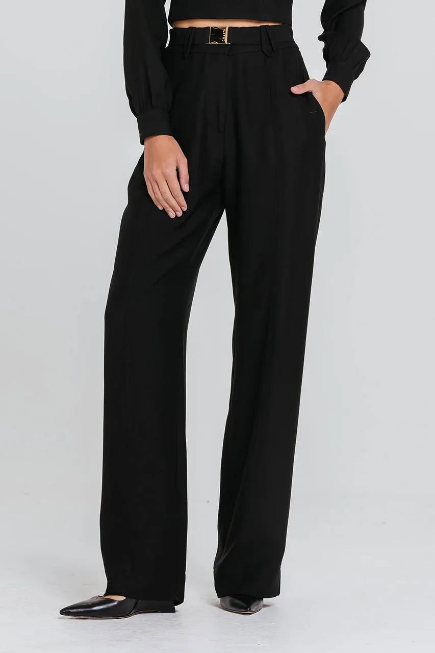 Confeccionada em crepe de acetato com viscose, nosso tecido nobre revela um caimento fluido e entrega muita beleza e feminilidade. A peça apresenta modelagem estruturada com detalhe da nossa fivela personalizada no cós, valorizando a silhueta com um shape elegante e entregando modernidade e exclusividade CHARTH. Possui passantes duplos e abotoamento frontal por colchetes e zíper.