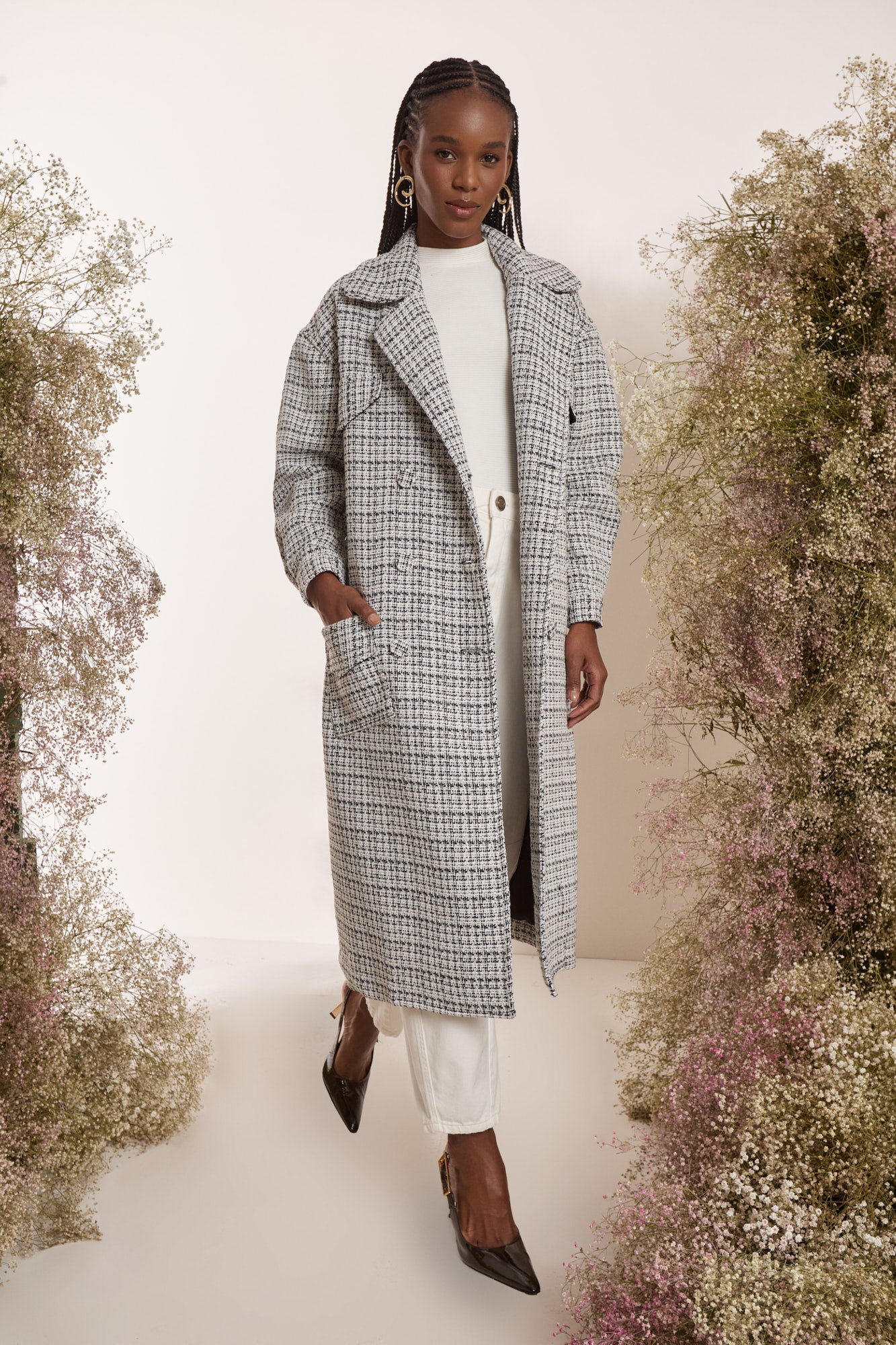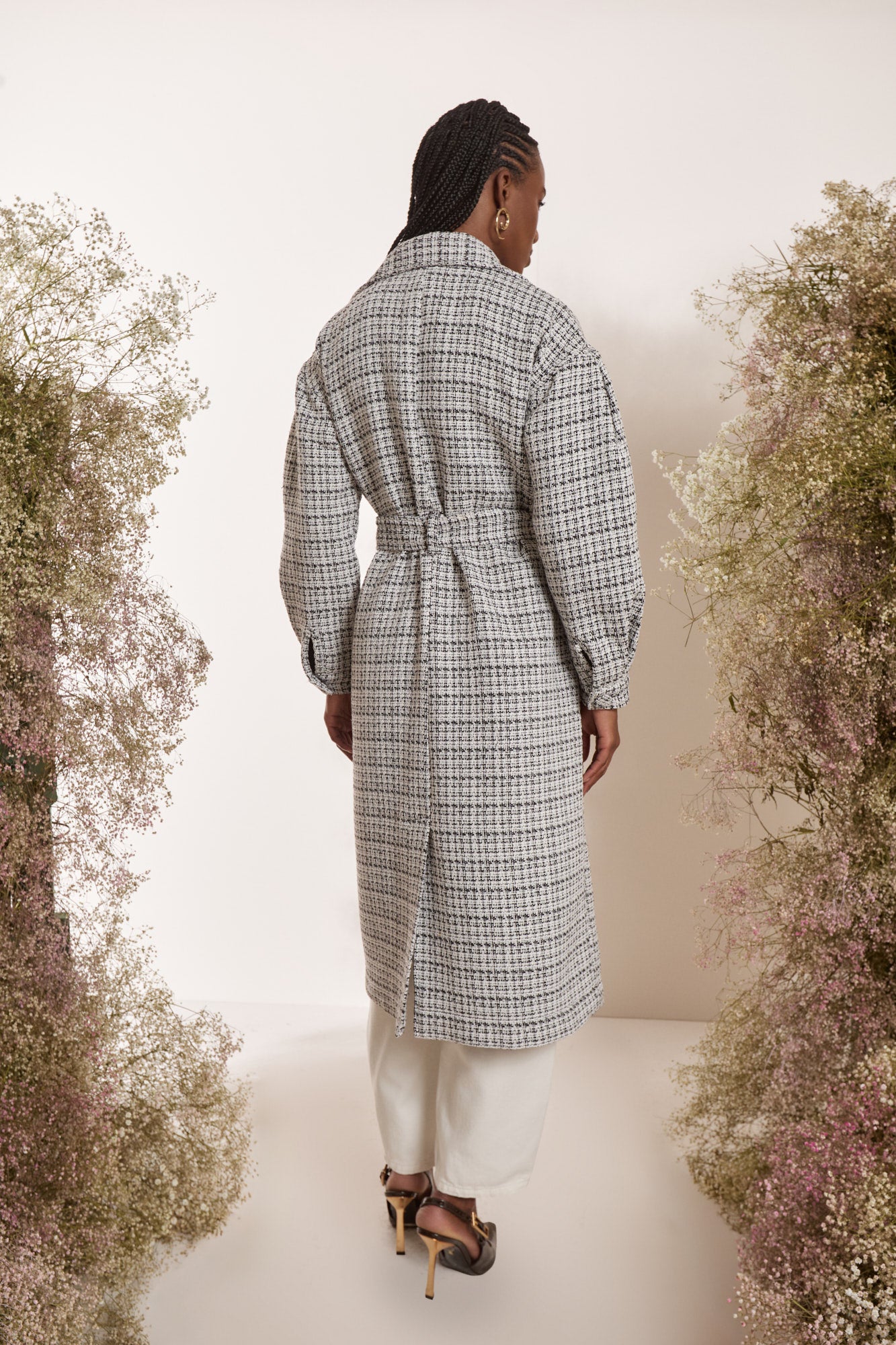 TRENCH COAT TWEED P/B PRETO/OFF WHITE