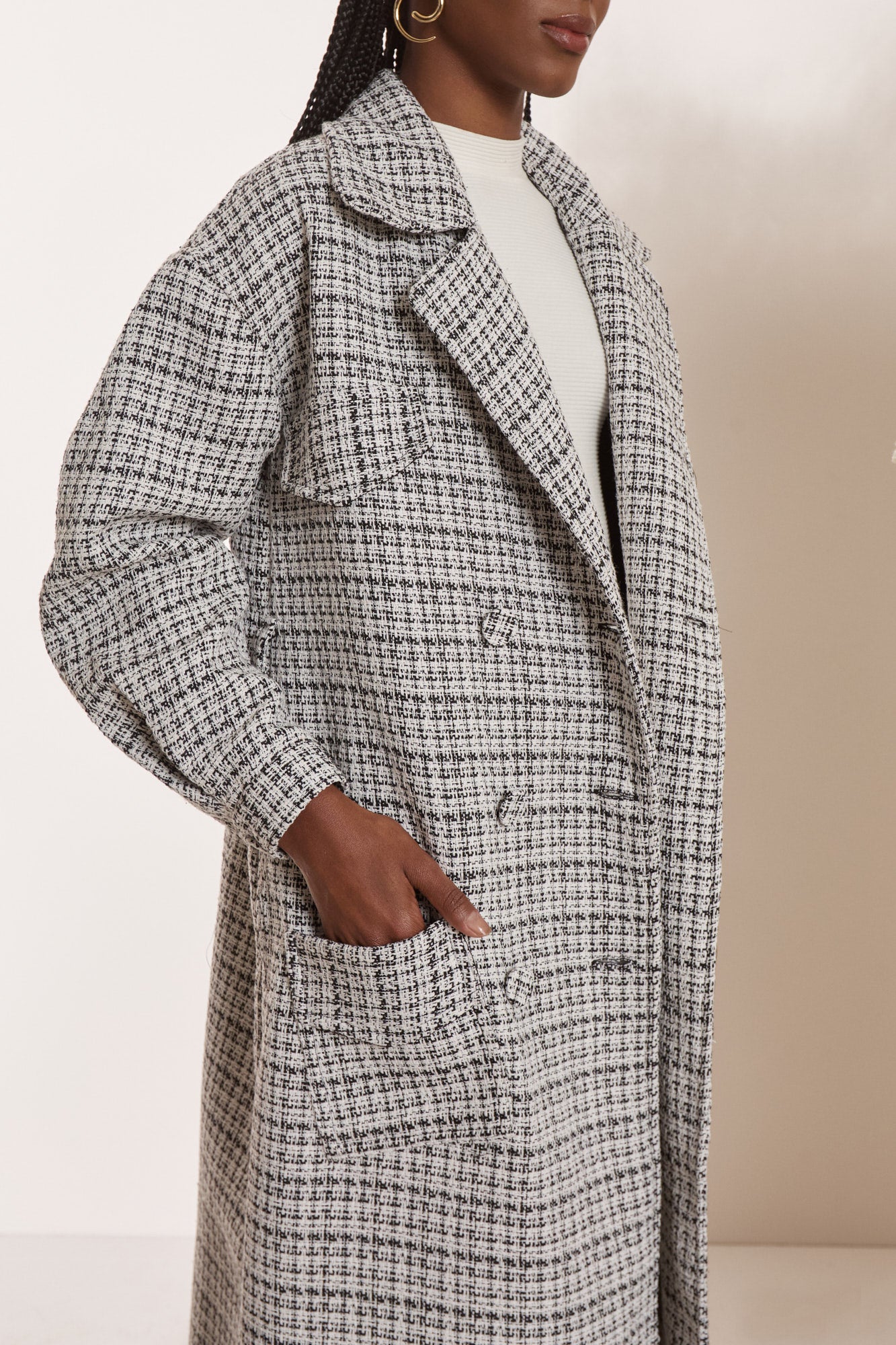 Trench Coat Tweed P/B Preto/Off White Litt