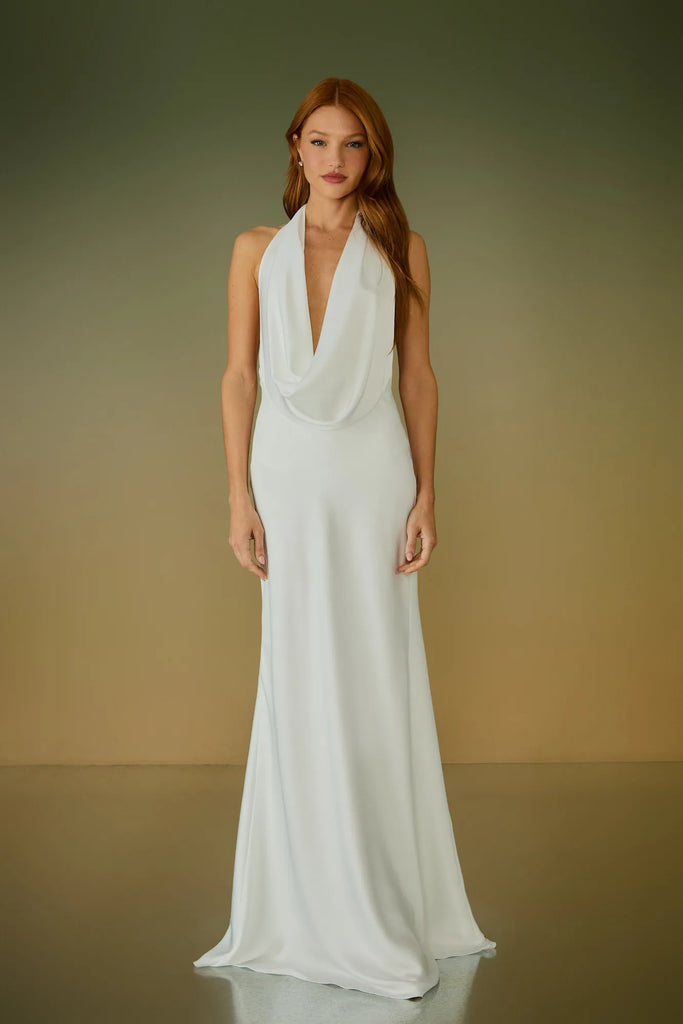 VESTIDO LONGO HELENA DRAPEADO BRANCO