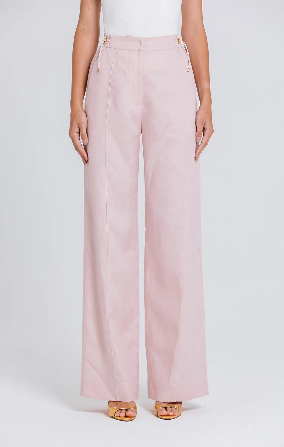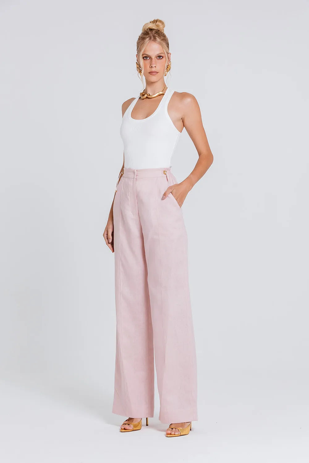 CALÇA JEANNE une modernidade e conforto em uma única peça. Feita em linho premium, apresenta cintura alta com reguladores no cós, pernas amplas e fluidez no caimento, criando uma silhueta alongada e elegante. Uma peça coringa extremamente versátil, que permite composições refinadas para diferentes ocasiões.