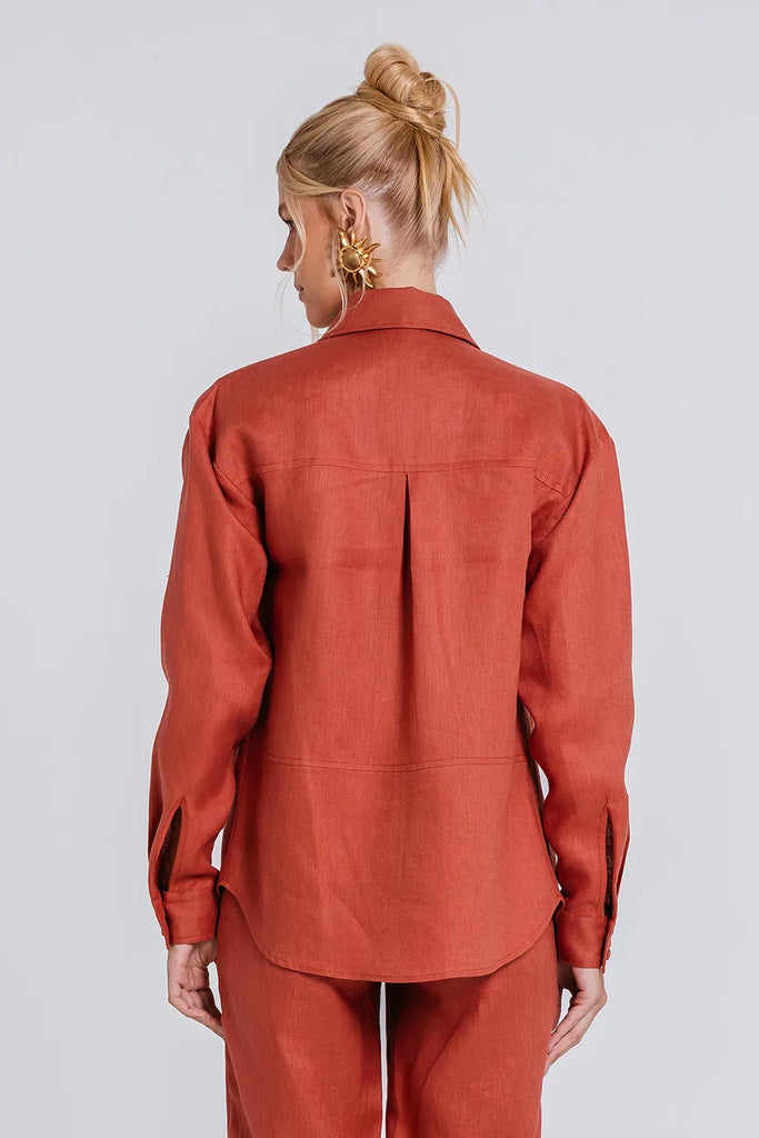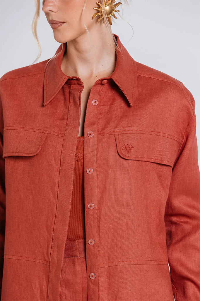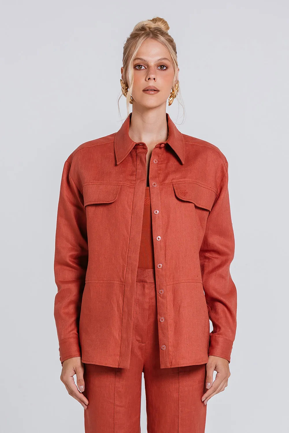 A CAMISA IVY é sinônimo de atemporalidade. Confeccionada em linho premium, possui modelagem reta, gola clássica e abotoamento frontal. Seu detalhe frontal simula tampas de bolso com o nosso bordado Charth. Leve e versátil, pode ser usada de forma tradicional ou como sobreposição, adicionando sofisticação imediata a qualquer look.