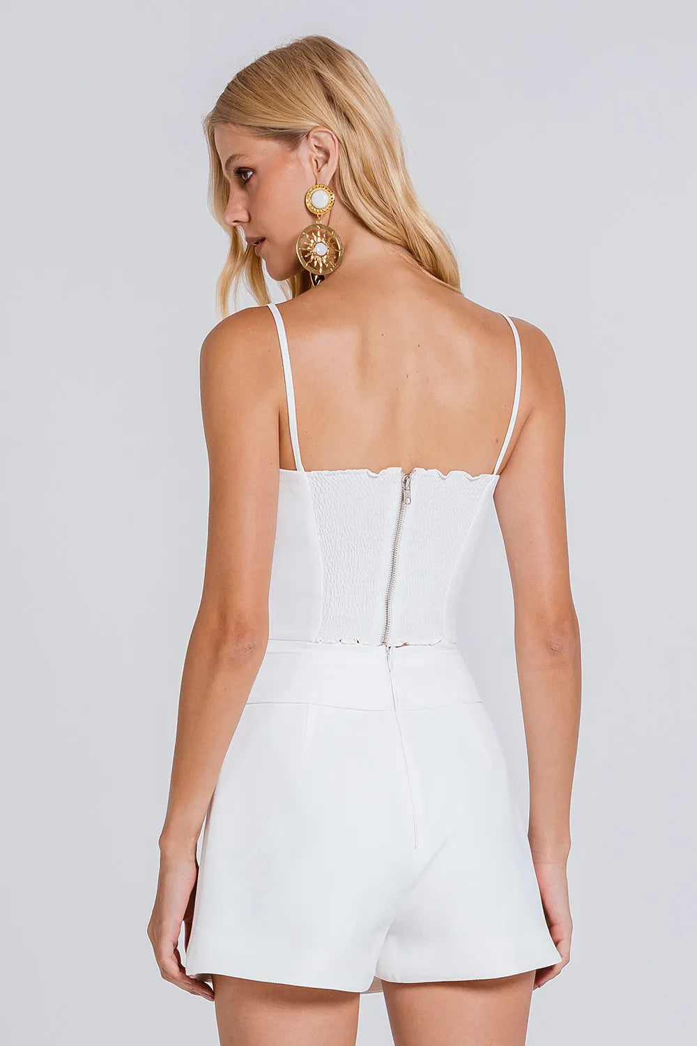 Combine o Short Saia Alba com nossos Tops, para um look equilibrado e sofisticado, perfeito para diversas ocasiões.