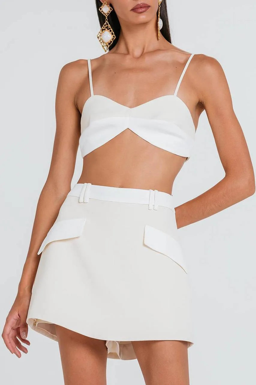 Short Saia Arabela Bicolor Marfim/Off White Charth