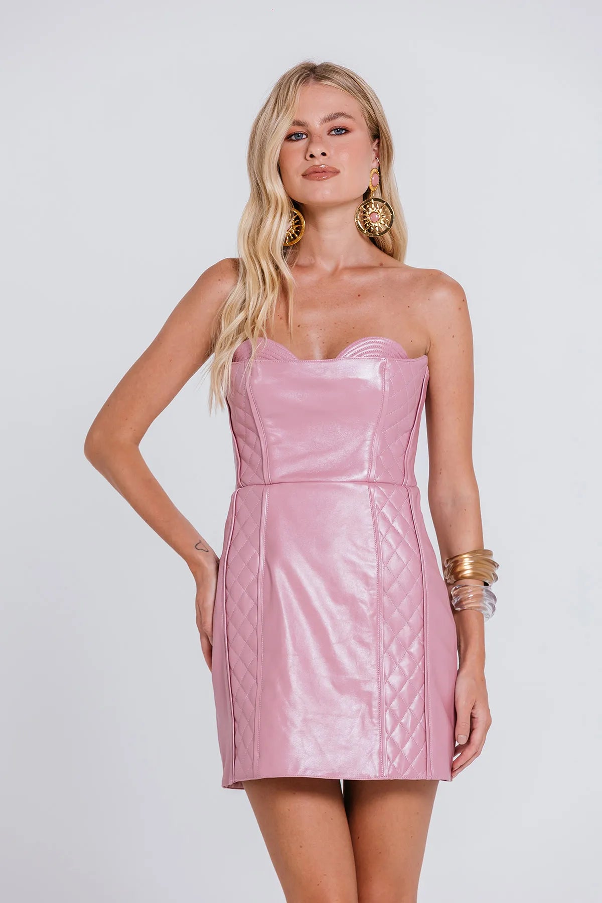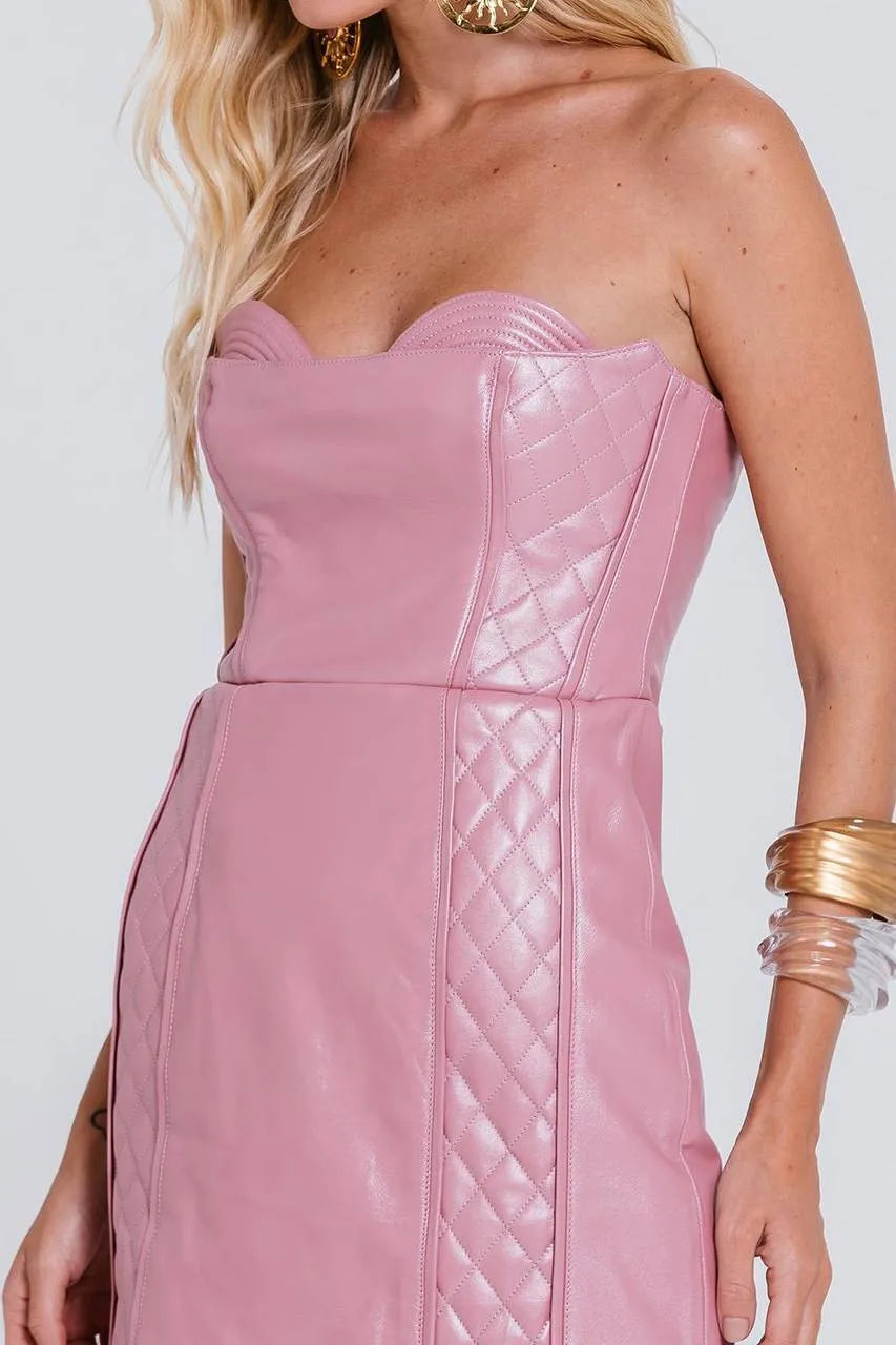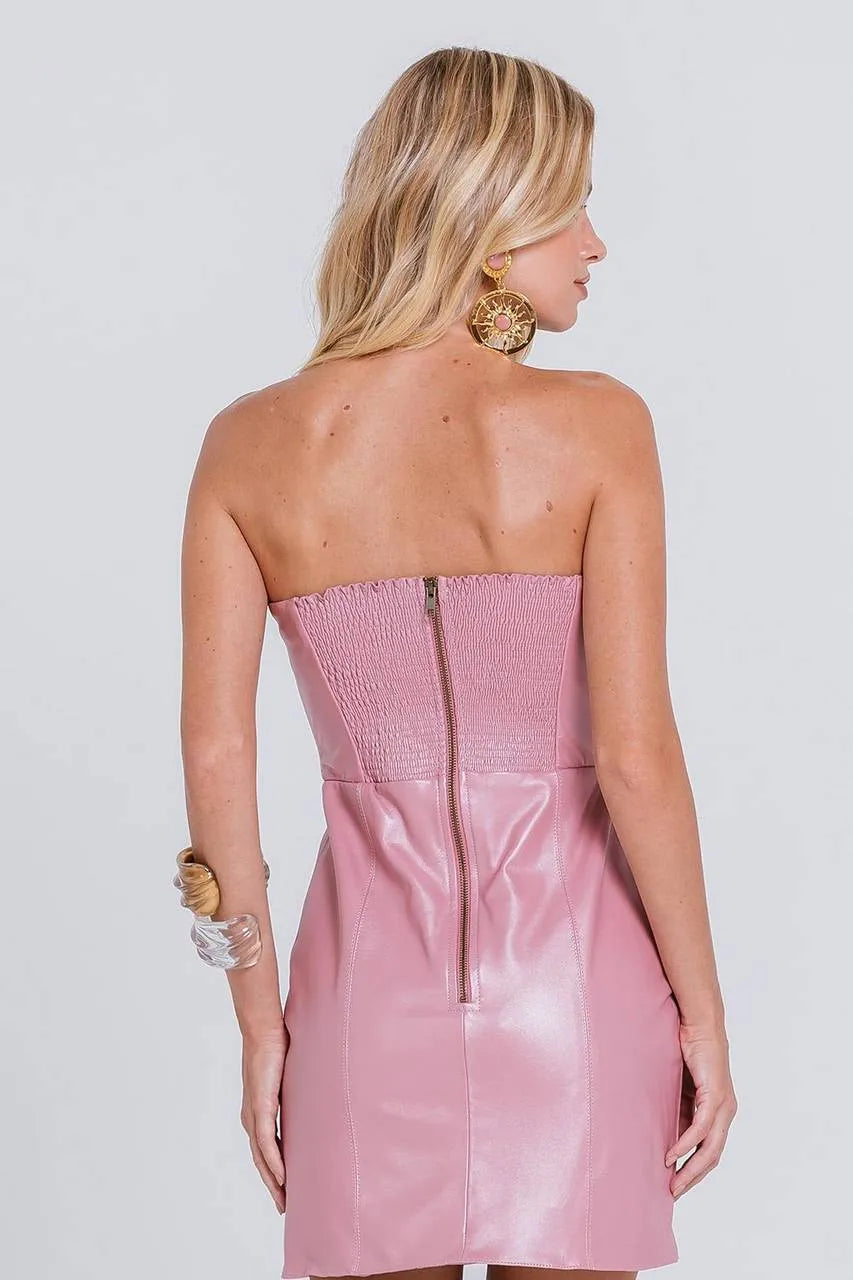 O VESTIDO LARA traduz sensualidade e feminilidade em versão mini de couro.