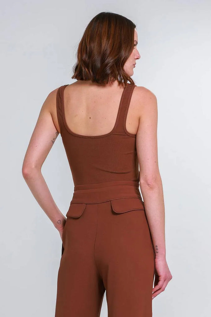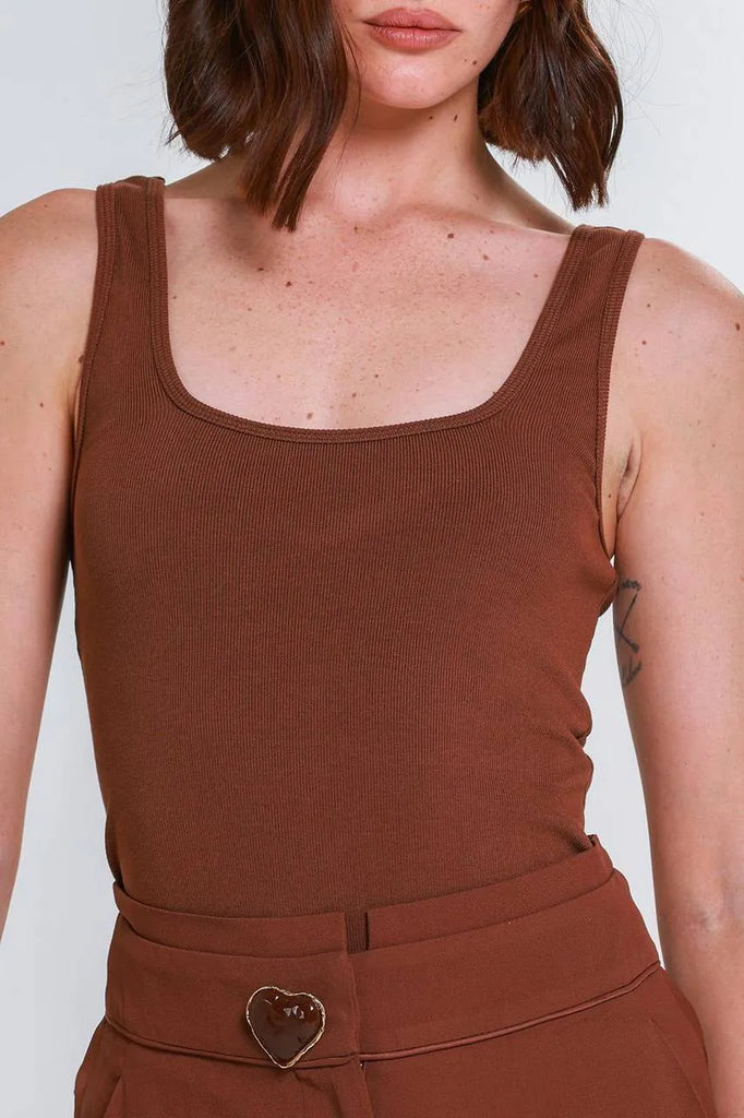 Com uma modelagem ajustada, a regata realça a silhueta com delicadeza, enquanto o decote quadrado adiciona um toque contemporâneo ao design.