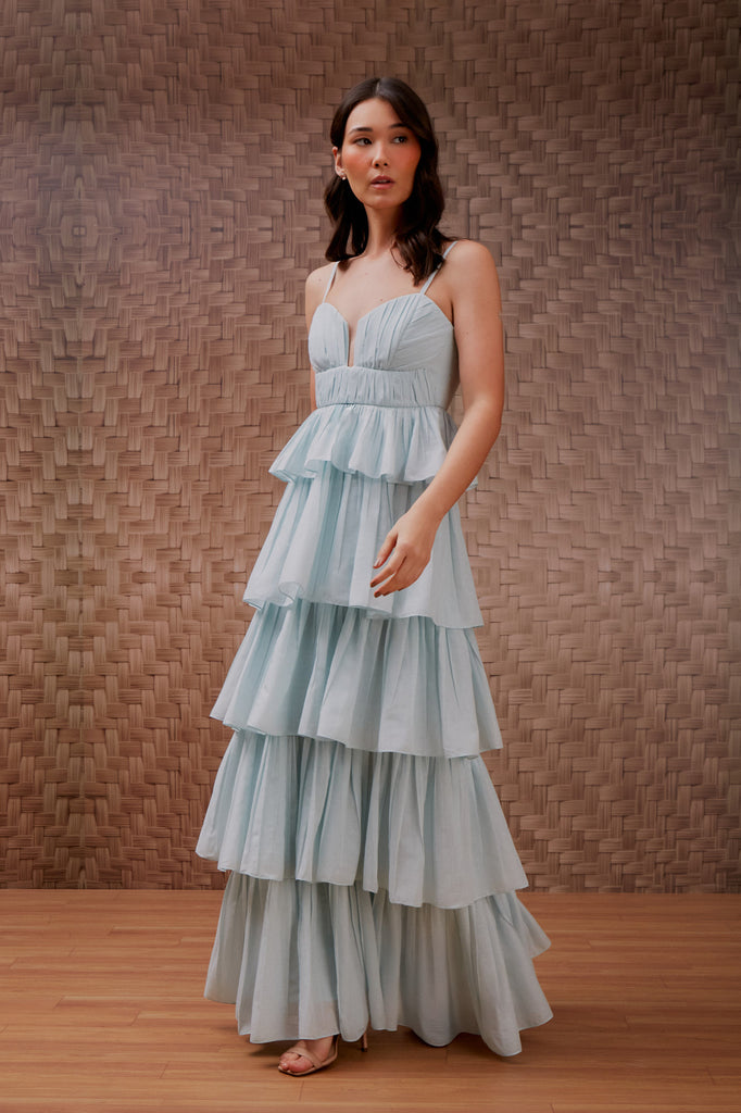 VESTIDO LONGO JOAN GODE BABADOS ACELGA