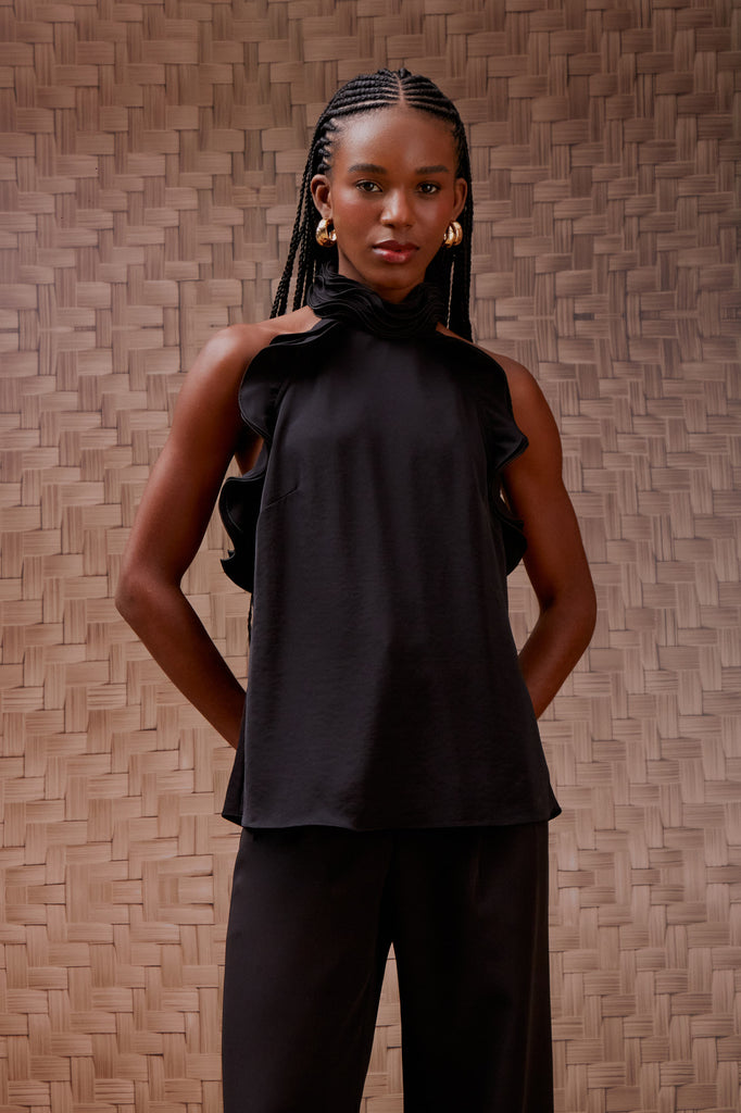 BLUSA NUBIA FLUID MIL FOLHAS PRETO