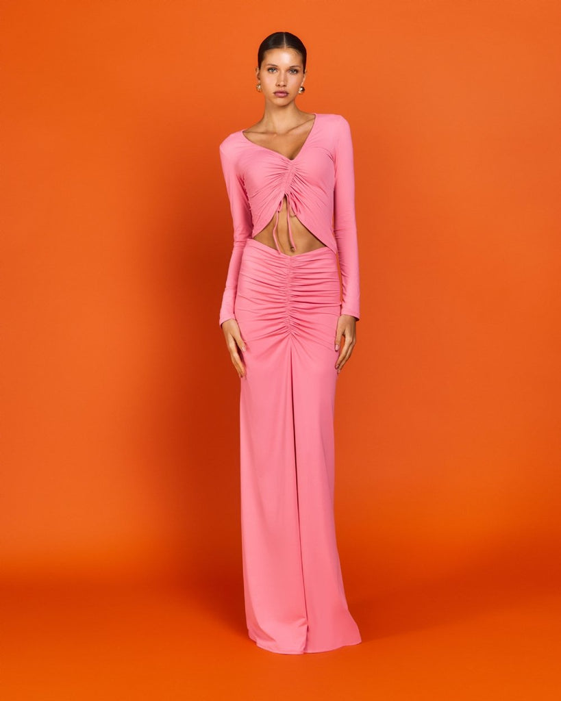 CONJUNTO BLUSA MANGA LONGA NEREIDA ROSA + SAIA LONGA NEREIDA ROSA