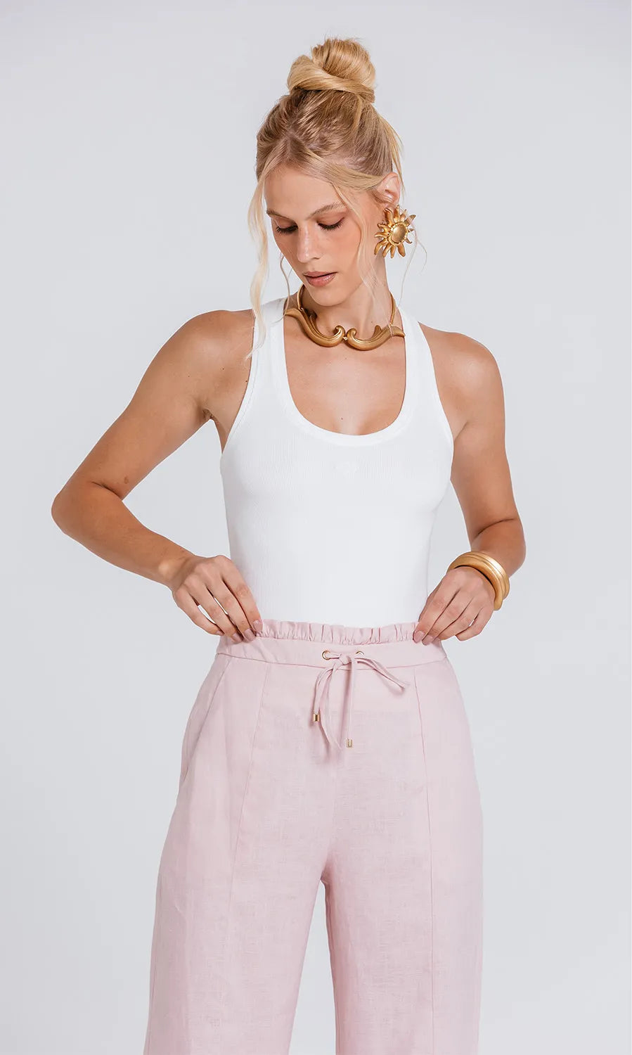 A CALÇA EMA é um clássico da alfaiataria descontraída. Confeccionada em nosso linho premium, traz modelagem reta, levemente solta ao corpo e detalhe de amarração e franzido no cós. Possui bolsos laterais funcionais e fechamento lateral por zíper invisível, oferecendo praticidade e sofisticação para o dia a dia.