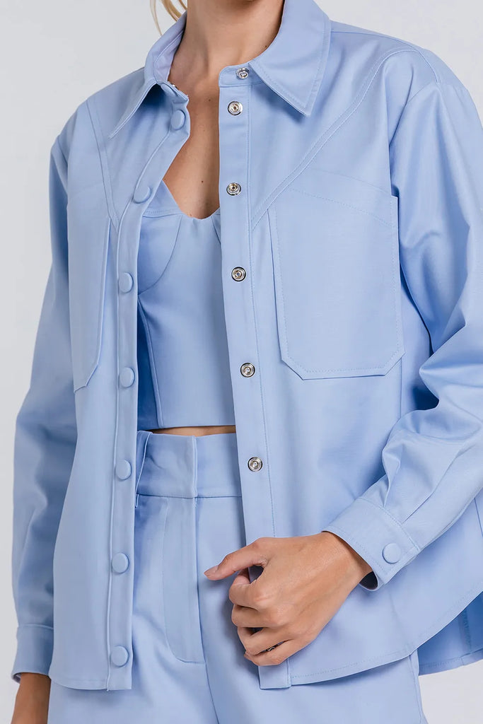 CAMISA TALIA traduz uma elegância moderna com apelo utilitário e sofisticado.