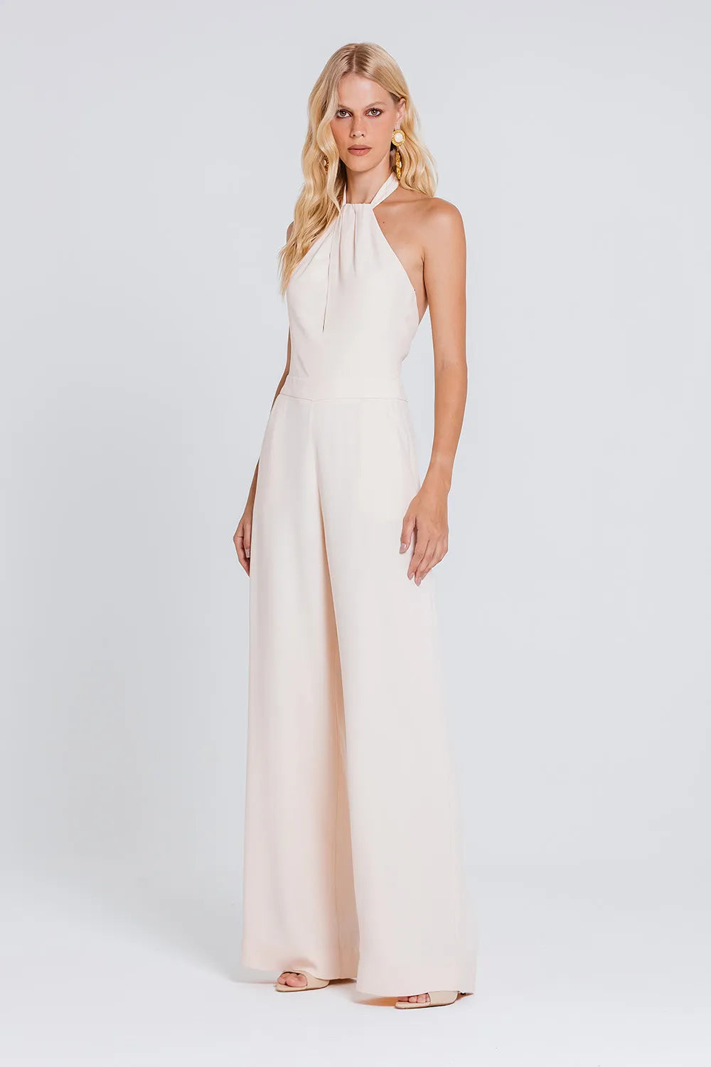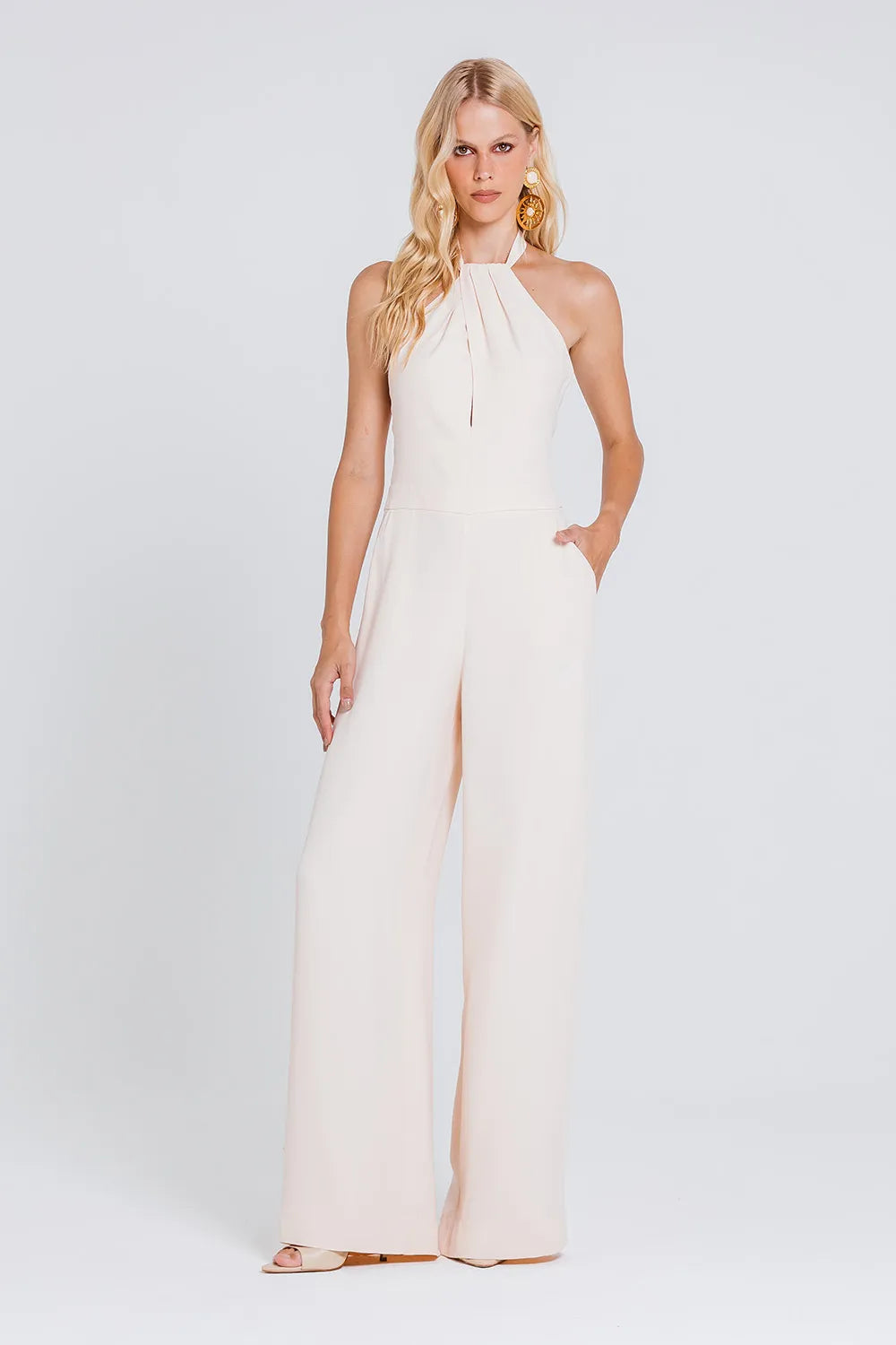 Nosso MACACÃO ANTONIA é a peça que traduz elegância em cada detalhe. Com decote halter drapeado que valoriza o colo, ele alonga a silhueta através da modelagem reta e fluida. Uma escolha versátil para ocasiões especiais, perfeito para quem busca um visual moderno, refinado e atemporal, sendo a peça ideal para ocasiões especiais em que o estilo precisa falar mais alto.