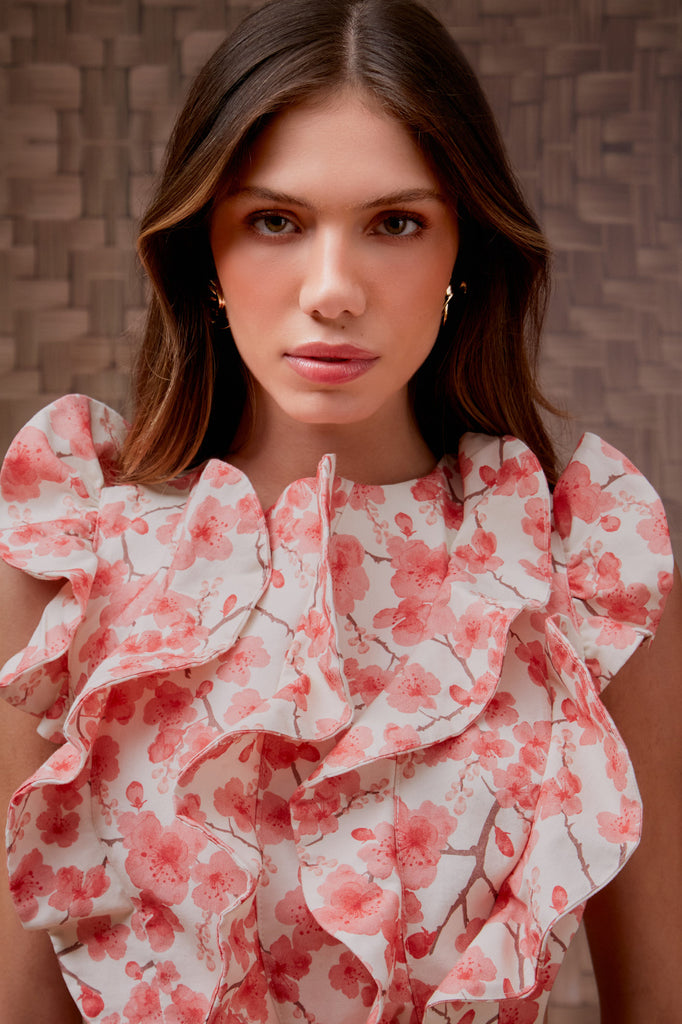 MACAQUINHO BABADOS FLORAL CEREJEIRA ESTAMPA FLORAL CEREJEIRA