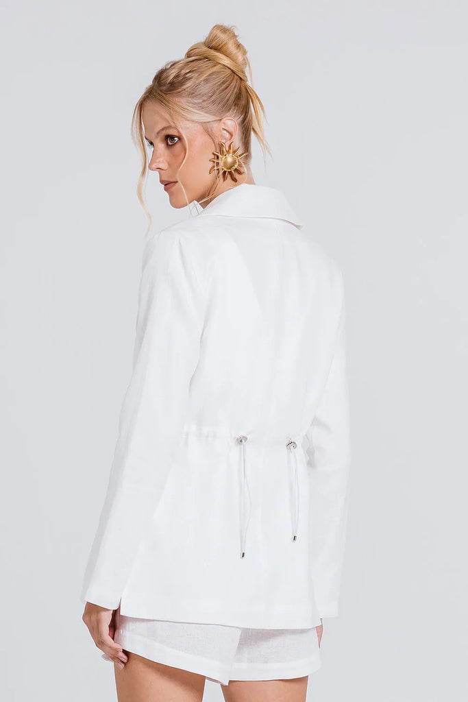 A PARKA CLAUDIA traduz a elegância casual em sua melhor forma. Confeccionada em linho premium, apresenta modelagem levemente acinturada, com regulador ajustável na cintura que valoriza a silhueta e enriquece a peça. Detalhe de e fechamento frontal por botão que adiciona praticidade e estilo, tornando-a perfeita para composições modernas e versáteis.