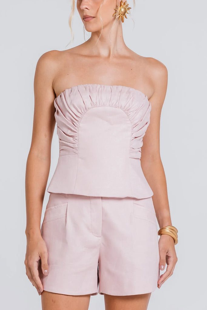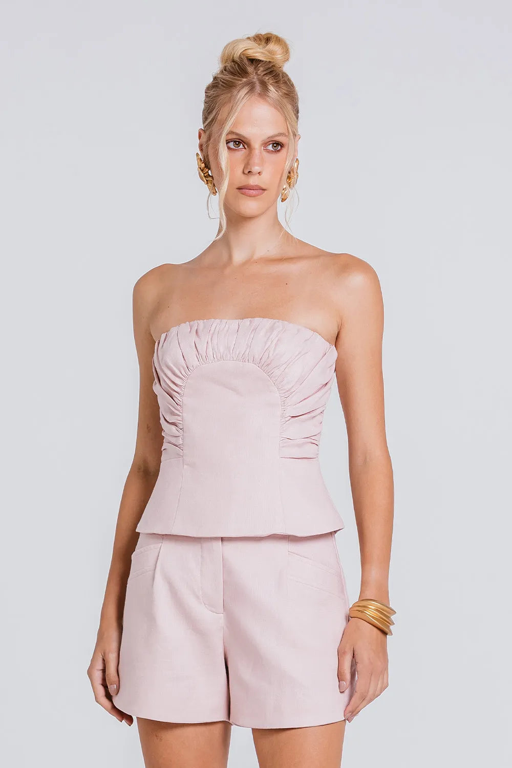 O TOP SERAFINA traduz frescor e elegância em uma peça leve e sofisticada. Confeccionado em linho premium, possui em sua modelagem um maravilhoso recorte central abaixo do busto, desenhando a silhueta e entregando mais texturas na parte de cima da peça, com franzido em sua estrutura tomara que caia. Com muita informação de moda e feminilidade, é uma peça que você precisa ter no seu guarda roupas.