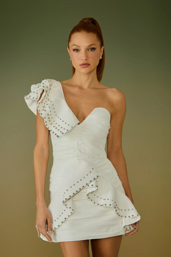 VESTIDO CURTO CAMERON BABADO OFF WHITE
