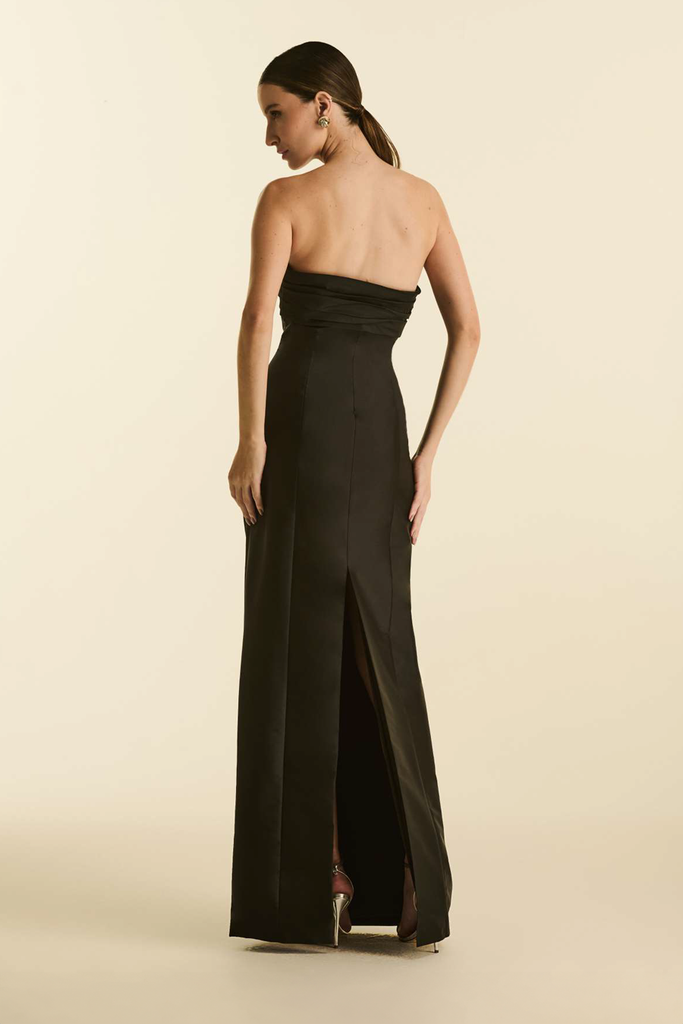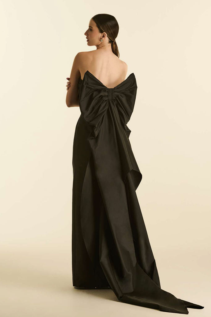 Vestido Tafeta com Laço Branco V26 Preto LYS
