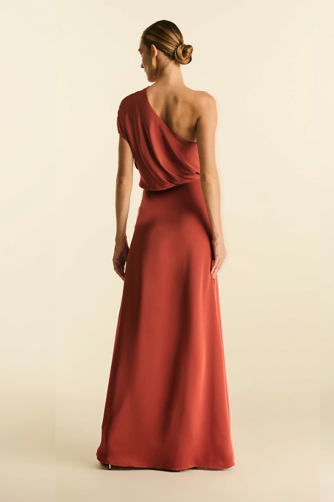 VESTIDO CETIM V26 TERRACOTA - Laranja / 42 / Longo está em espera e será enviado assim que estiver de volta em estoque