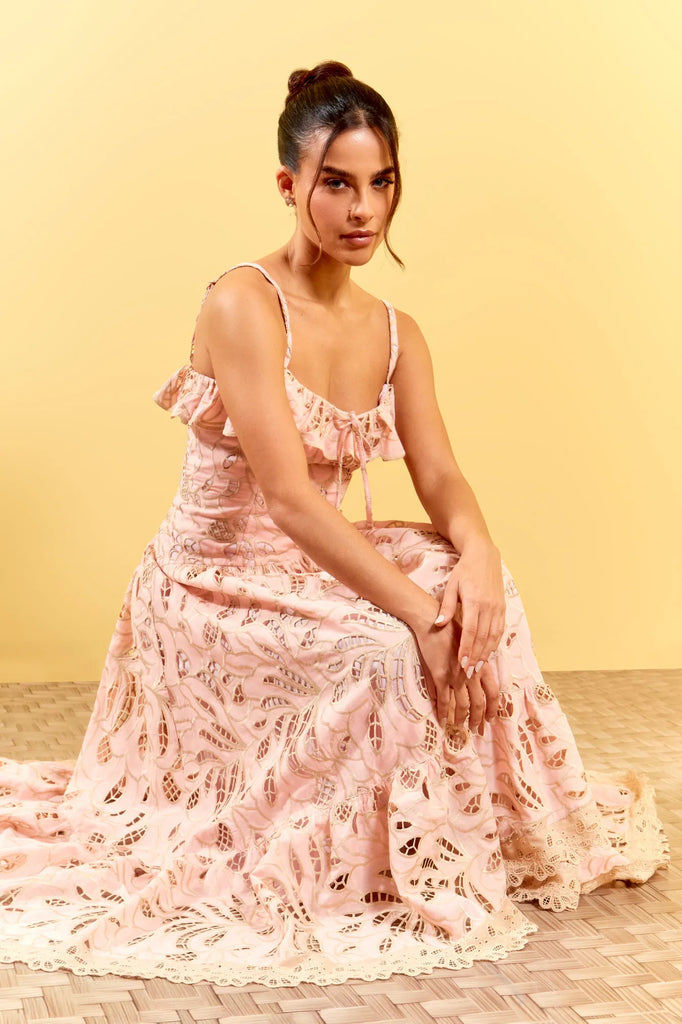 VESTIDO LAISE BICOLOR BUBBLES - Rosa / 34 / Midi está em espera e será enviado assim que estiver de volta em estoque