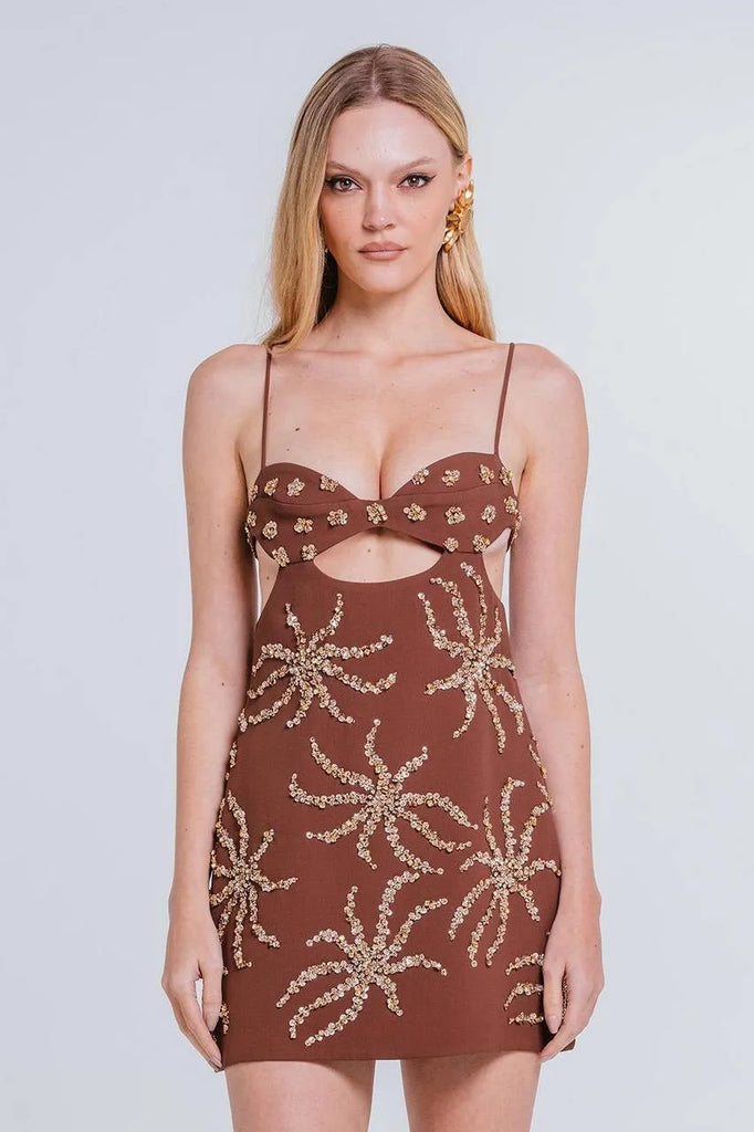 VESTIDO CURTO FRANCESCA BORDADO DOURADO PRETO