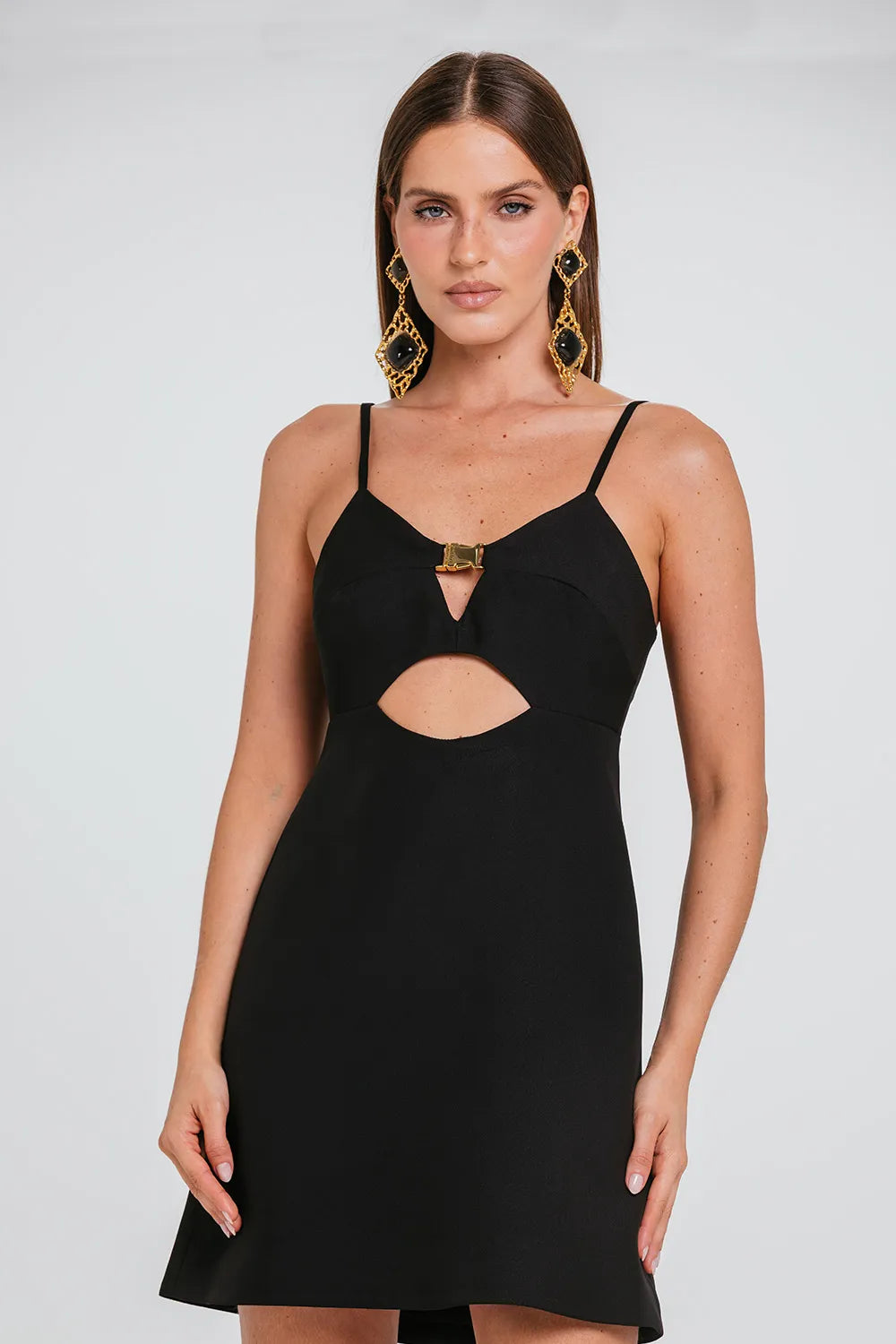 Confeccionado em crepe de acetato com viscose, o VESTIDO MILANI possui alças finas que entregam sustentação e conforto e delicados decotes frontais, entregando muita feminilidade e elegância na medida certa. Esta peça possui também nossa fivela personalizada CHARTH, trazendo ainda mais informação de moda para sua produção.